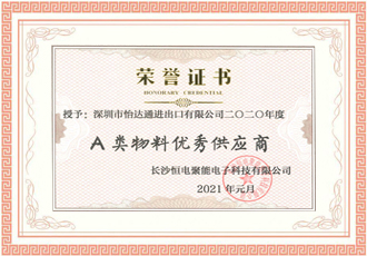 恒電聚能-優(yōu)秀供應(yīng)商證書