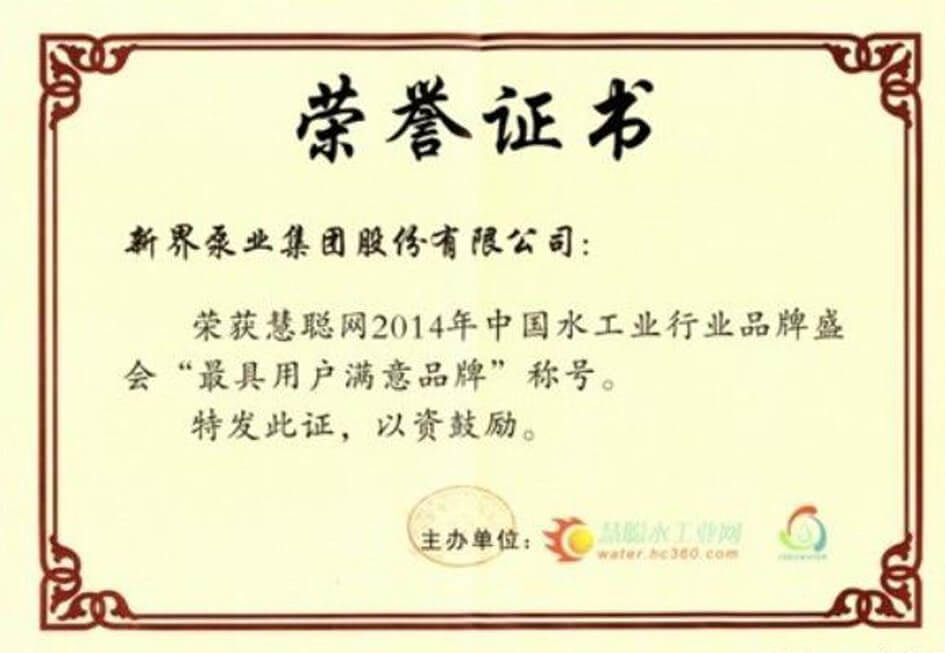 “用戶至上”新界泵業(yè)榮膺 “最具用戶滿意品牌”