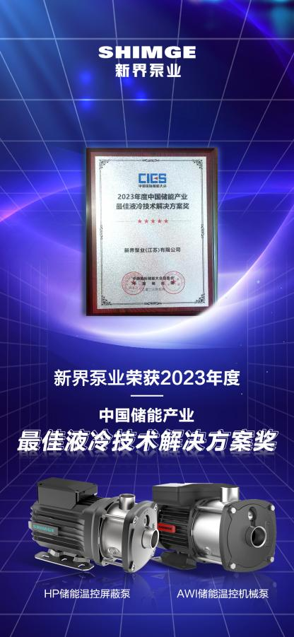 新界泵業(yè)憑借出色的儲能技術(shù)成果,榮獲2023年度中國儲能產(chǎn)業(yè)最佳液冷技術(shù)解決方案獎。此次獲獎,是大會對新界儲能科技創(chuàng)新的充分肯定,也是對新界驅(qū)動綜合創(chuàng)新力發(fā)展的又一次激勵。