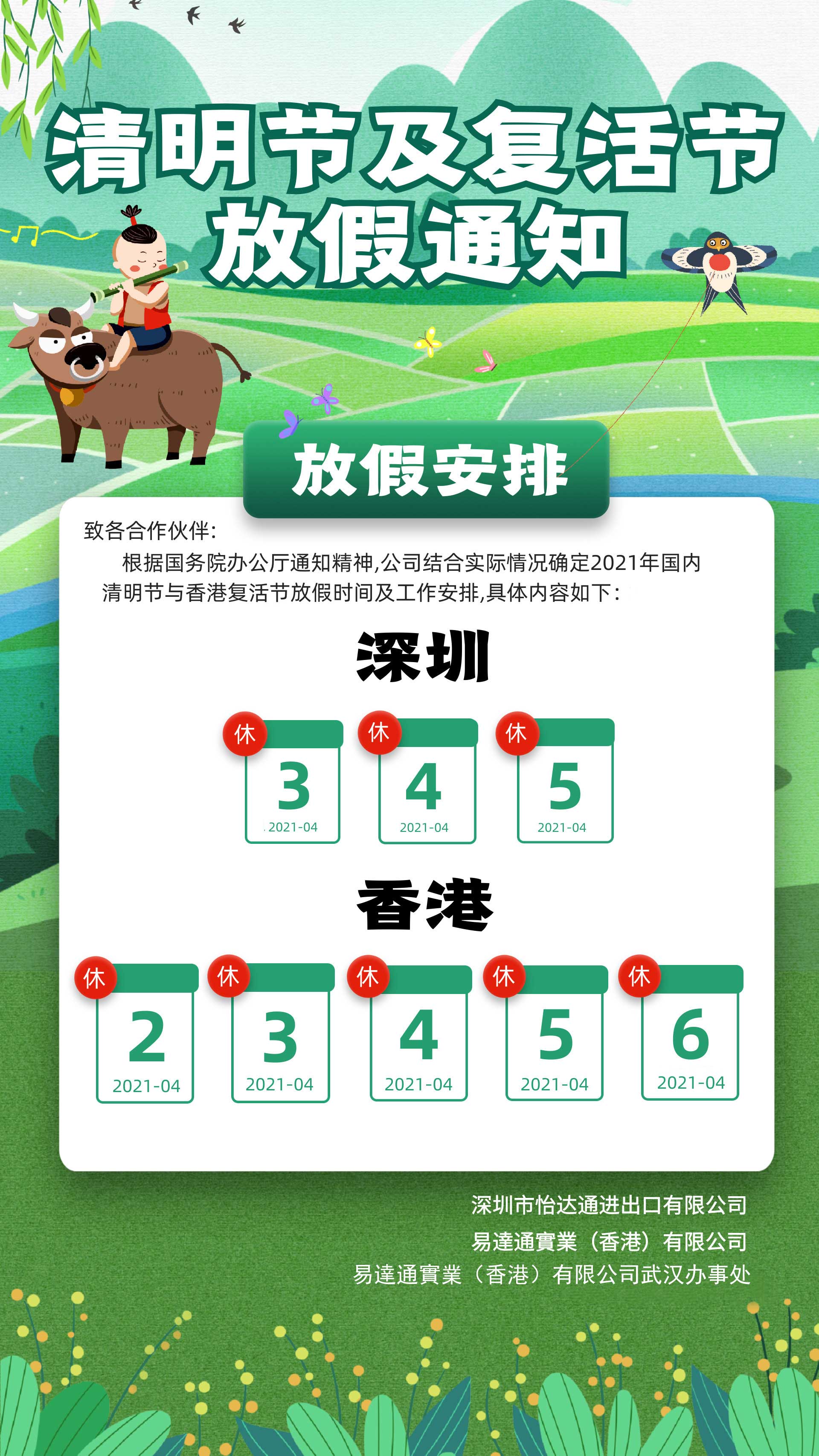 易達(dá)通2021清明節(jié)及復(fù)活節(jié)放假通知