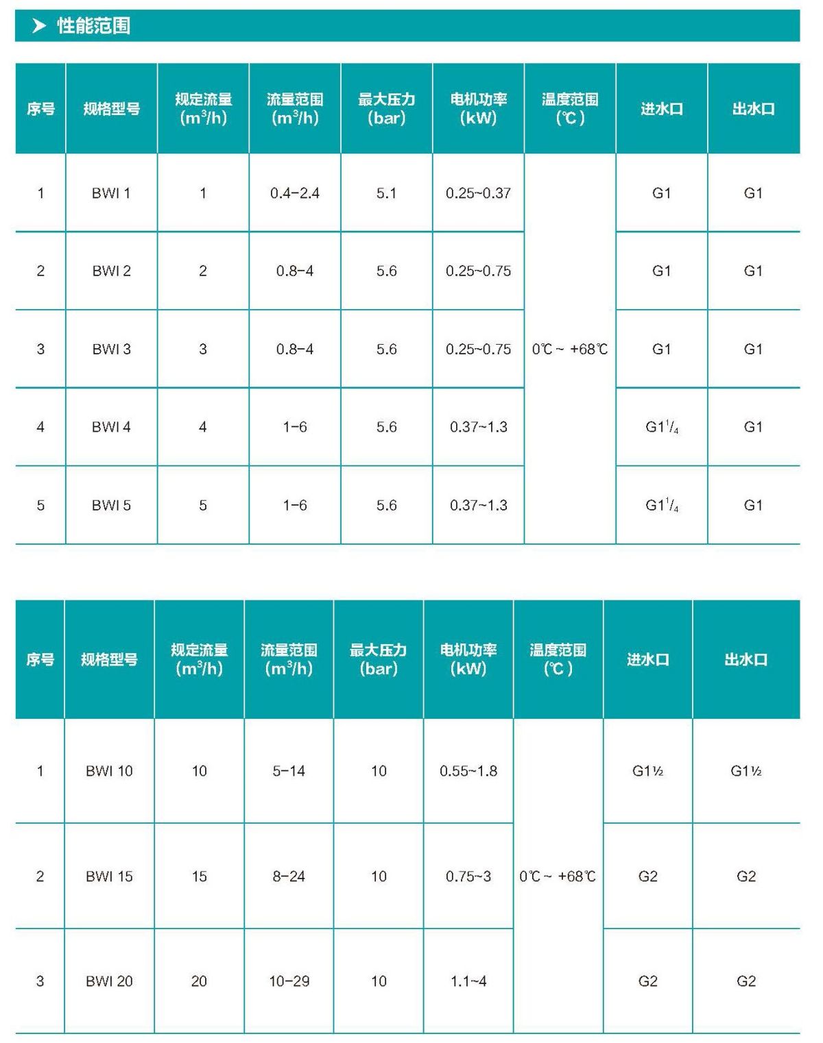 BWI 新型輕型不銹鋼臥式多級離心泵