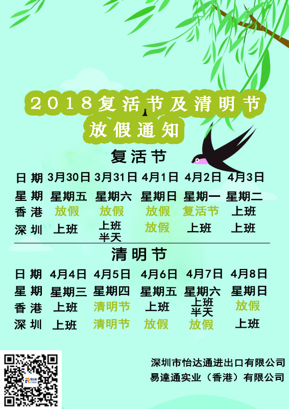 2018易達(dá)通復(fù)活節(jié)及清明節(jié)放假通知