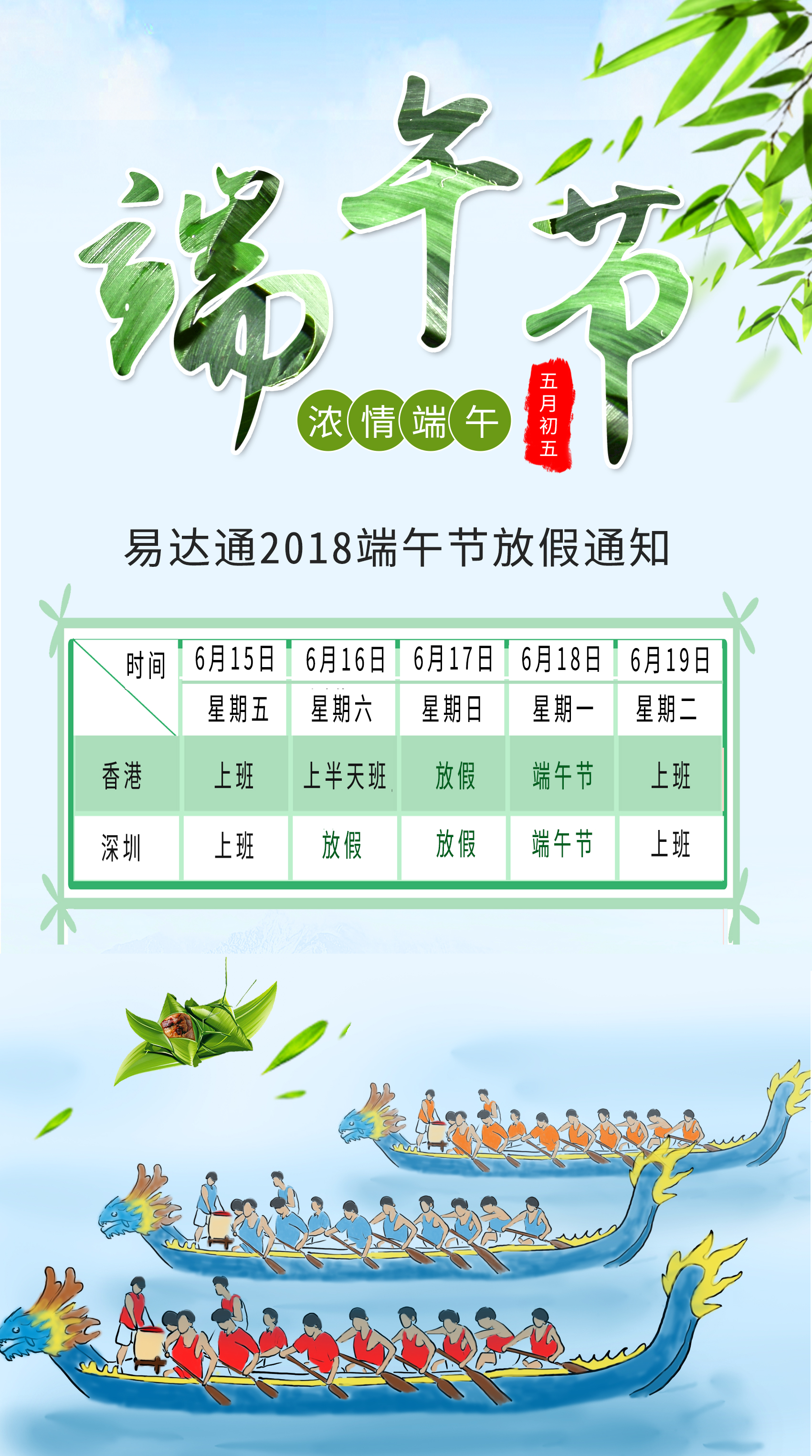 易達(dá)通2018端午節(jié)放假通知