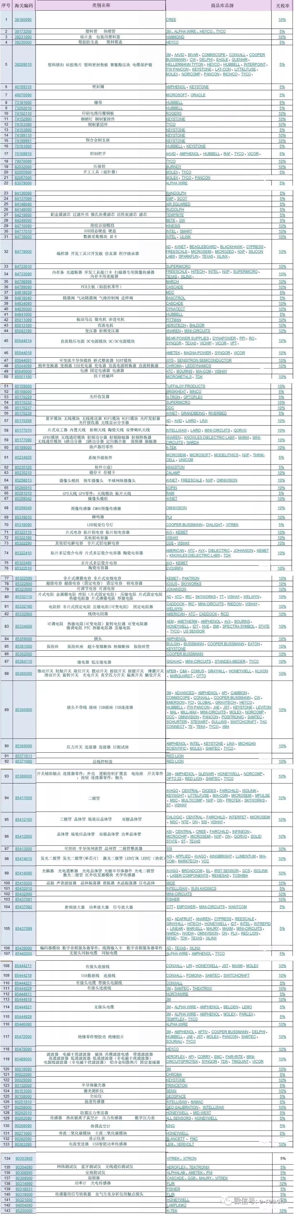 9月24日執(zhí)行的對關(guān)稅稅率相比8月3日公布的信息有一定的下調(diào),我司根據(jù)業(yè)務(wù)系統(tǒng)歷史數(shù)據(jù)及參照6號公告所附加征商品清單,分析出此次預(yù)計受影響商品海關(guān)編碼有143個,涉及商品品牌262個。詳細如下: