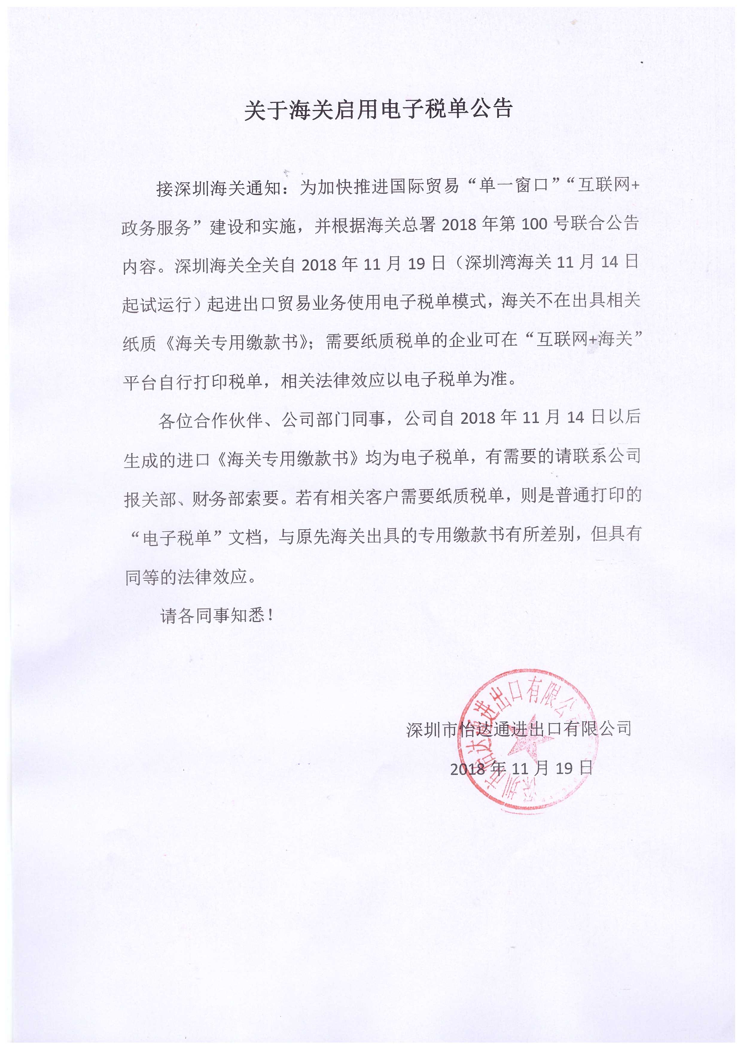 關(guān)于海關(guān)啟用電子稅單公告