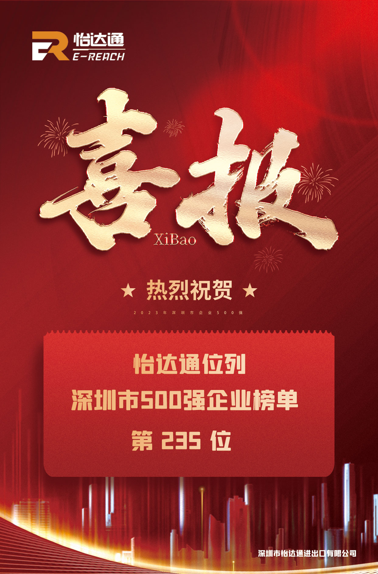 9月25日,深圳市企業(yè)聯(lián)合會(huì)、深圳市企業(yè)家協(xié)會(huì)正式發(fā)布“2023深圳企業(yè)500強(qiáng)榜單”,怡達(dá)通排名235位,這是對(duì)我們多年來(lái)不懈努力的最高肯定。